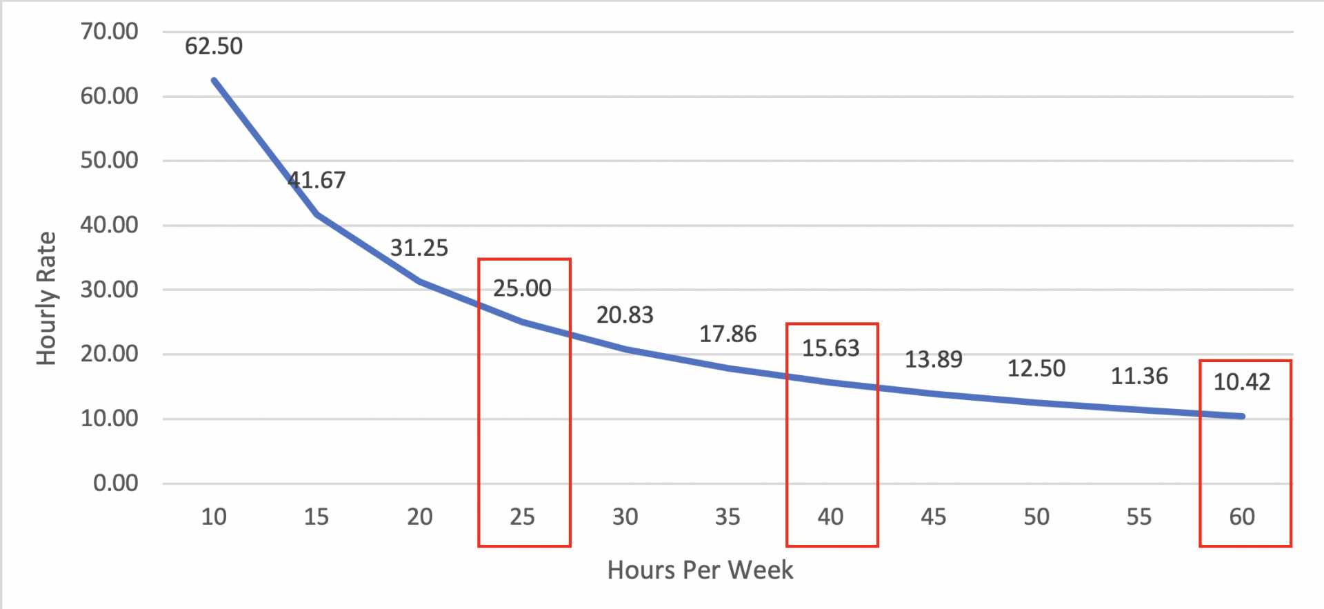60 hours = $10.42/hour